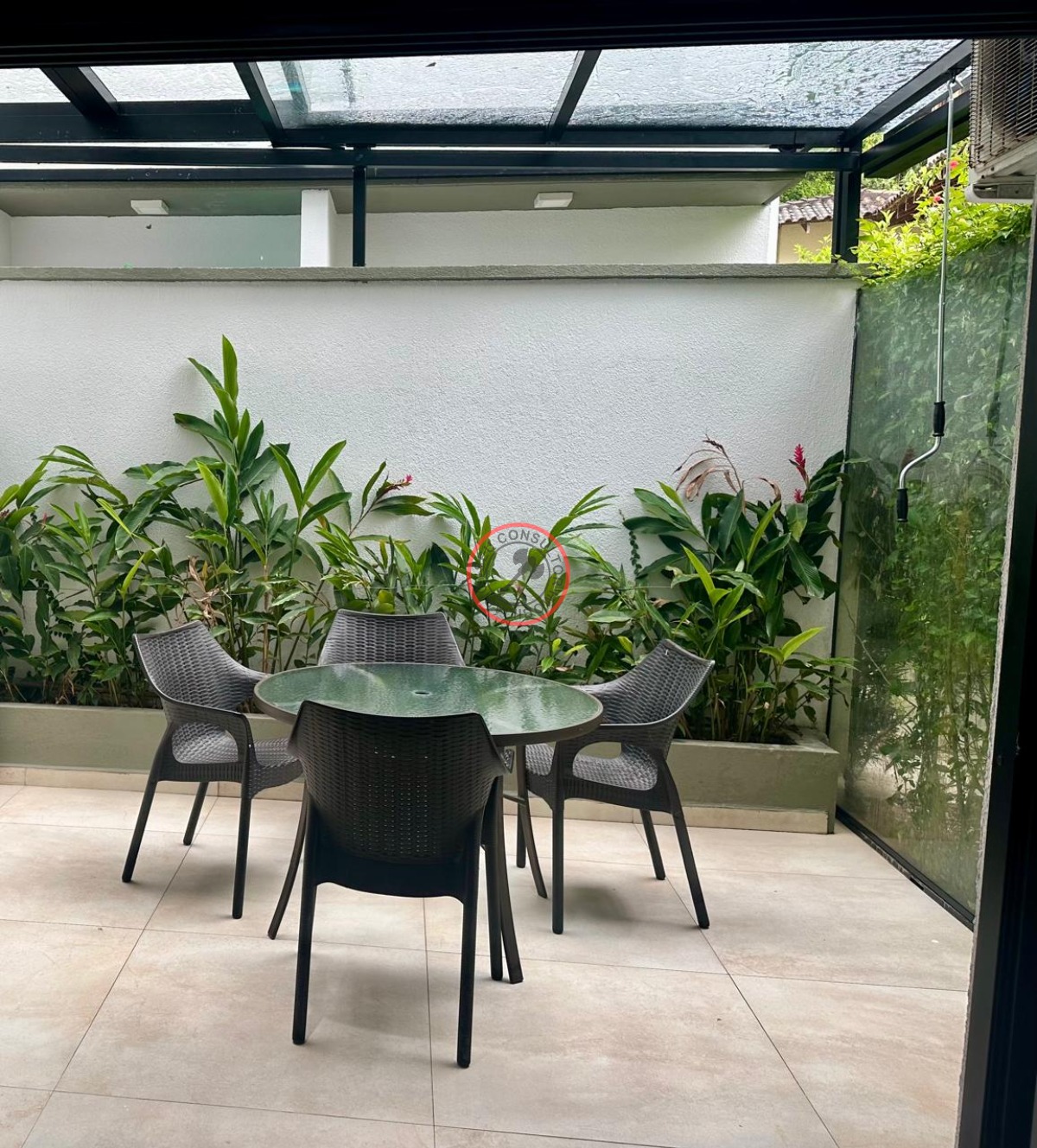 Localizado próximo à praia, o imóvel ainda conta com uma varanda que proporciona uma vista relaxante.